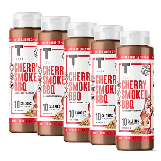 Taste Flavor Co. Grilling, Dipping Sauce and Marinade, Great Tasting, Low-Calorie Sauces, Keto Friendly, No Oils (5 Pack, Cherry Smoked BBQ)
