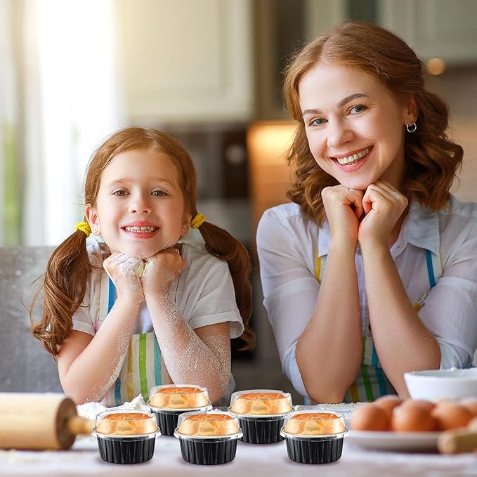 - Portable Size: you will receive 400 pack aluminum foil cupcake liners with 400 matching transparent lids; The capacity of the flan molds is 5 oz/ 125 ml, the top diameter is 3.35 inches, and the bottom diameter is 2.56 inches, and 2.1 inches in height with lid