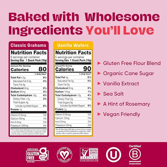 - CERTIFIED VEGAN + NATURAL GLUTEN-FREE GOODNESS: We take your trust seriously. We don’t just talk the talk - we’ve got the certs. Gluten-free. Vegan. Non-GMO. B Corp. Kosher. Celiac friendly. Whether cookies or graham crackers, soft-baked or crunchy, Partake’s variety is parent-approved.