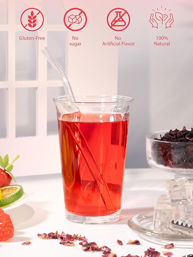 - [TANGY & & SWEET FLAVOR] - Carefully blended hibiscus, stevia, hawthorn, and rosehip give it a nice balance of tartness, sweetness, and floral notes. The addition of natural strawberry and raspberry flavors likely enhances the fruitiness, making it even more delicious.