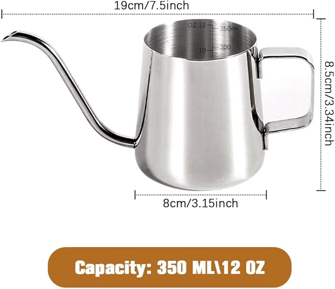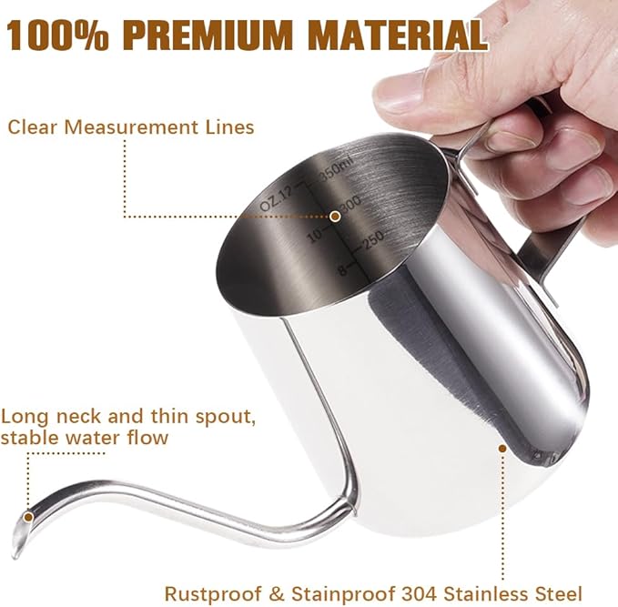 - Food Grade Material : This gooseneck spout coffee cup is made of high-quality 304 stainless steel, which is rust proof, stain proof, and heat resistant. It has a stylish appearance and is very easy to clean after use