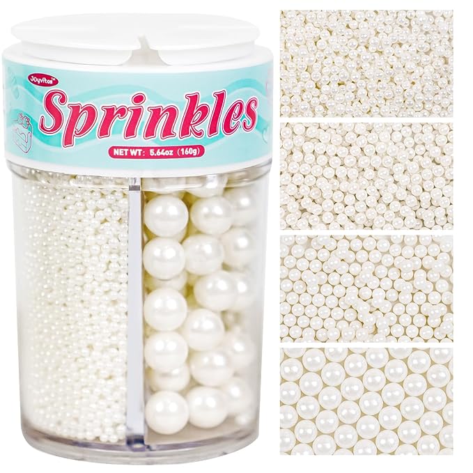 - These Edible White Pearl Candy Sprinkles are not merely a decoration but also sweet messengers that convey love and blessings. At a birthday party, on holidays, on Valentine’s Day and at wedding parties, they witness the eternal moments of happiness. White represents purity and beauty and is a common color used on wedding ceremony cake decorations.