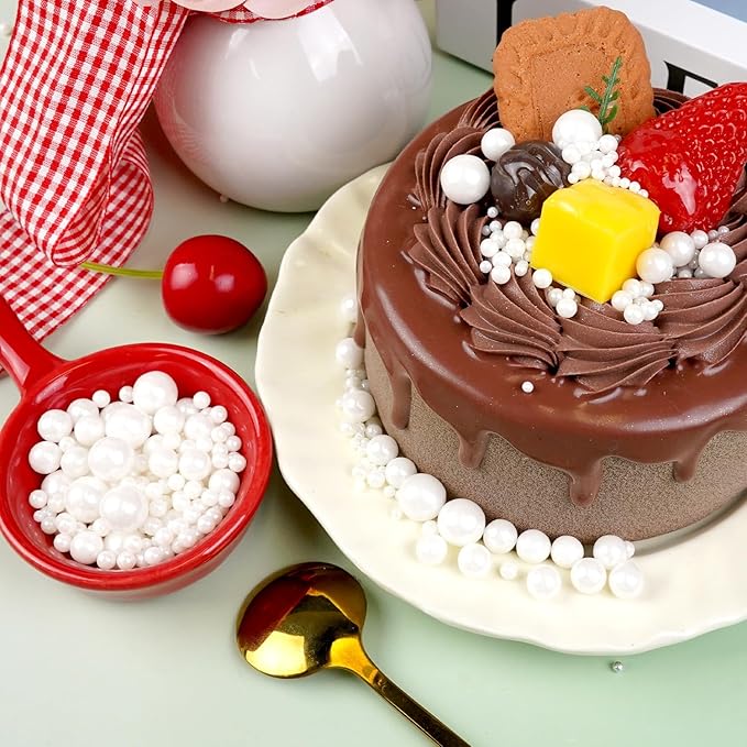 - Edible White Pearl suitable for cakes, cookies, Ice cream, Cupcakes other Foods. 1 bottle of sugar sprinkles makes 3-5 cupcakes or one 3-inch diameter cake. After baking, you can place pearl sprinkles on top of the cake as decoration.