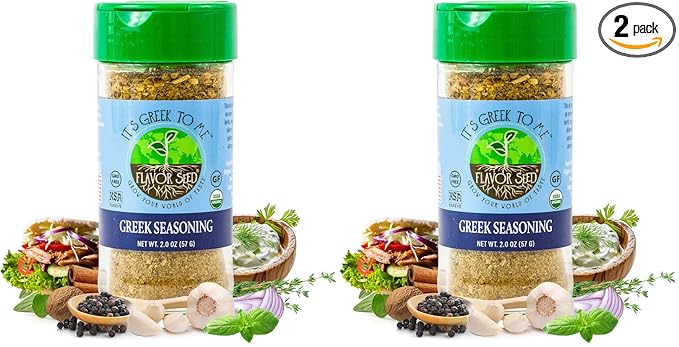 - MADE FOR GREEK FOOD LOVERS: It's Greek to Me is Flavor Seed's quest into greek mythology that you'll experience as soon as you open the jar. This 100% organic Greek Seasoning will fill the room with a beautiful sweet bouquet fresher than the salty air of the Greek Isles themselves.