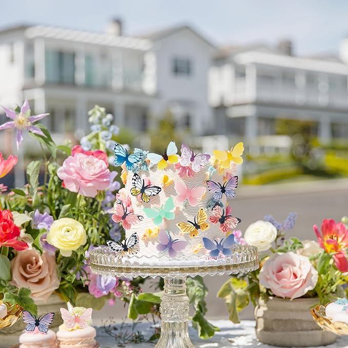 - Wide Usages ! These edible butterfly cupcake toppers are perfect for butterfly theme party, edible wafer paper flower theme party, baby shower theme party,wedding theme party, kids birthday theme party cupcake decorations, they can make your cake and cupcake more attractive and bring the fun to your party.You can also apply them for ice cream,fruits, pie, dessert, cheese or any dish and food appetizer you want to decorate.