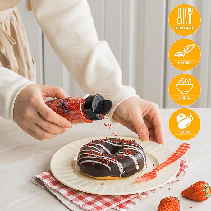 - Sprinkles for Cake Decorating: Take an appropriate amount of cupcake sprinkles to decorate the cake, cupcakes, cookies, chocolate, ice cream, donuts and desserts, etc. Make the food more halloween christmas wedding party birthday valentines festive. It is recommended to decorate the food after baking, Sprinkles at high temperatures will melt to varying degrees