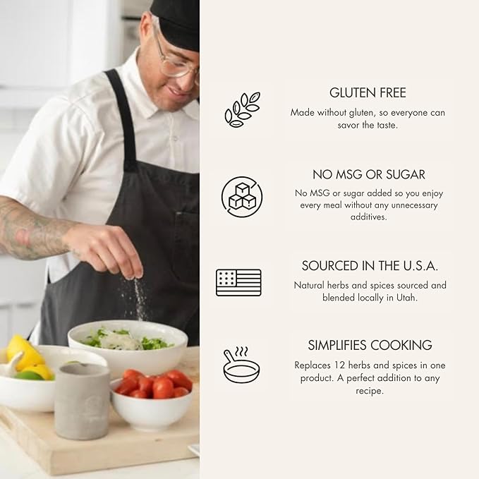 - ★ HEALTH BENEFITS - The gourmet blend is made of simple yet premium ingredients. Natural flake salt, garlic, peppers, spices and herbs. Without the use of chemical processes, sugar, gluten or anti caking agents. So often you can find sugar as one of the top ingredients in cooking rubs and seasonings. We are proud to say there is absolutely NO sugar in our signature blend. Simply rub or sprinkle onto any food before or after cooking.