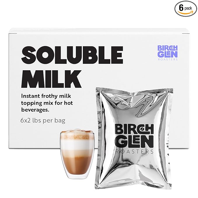 Birch Glen Roasters Soluble Milk Froth Mix Bulk Case – 6 Bags of 2lb Each – Smooth Milk Powder for Creamy Cappuccino Topping, Coffee, Lattes, and Hot Beverages