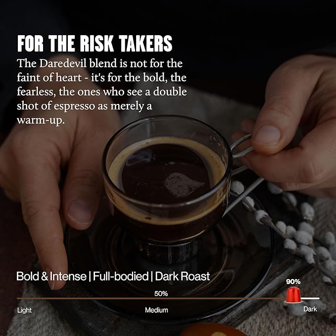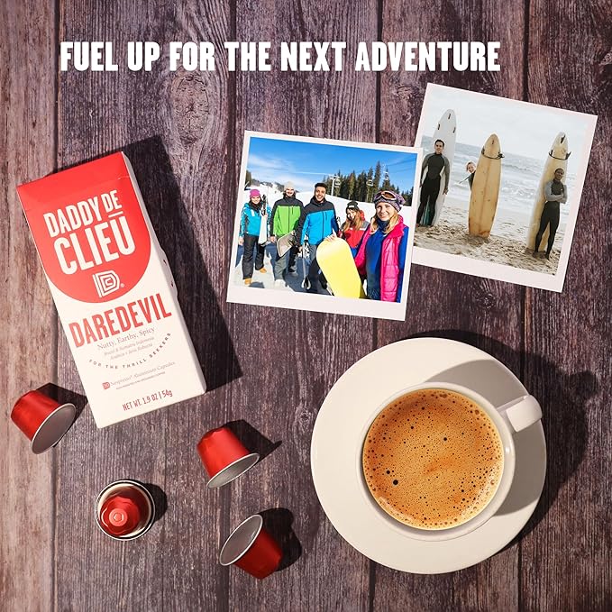 Daddy De Clieu Daredevil Coffee Pods (Bold, Dark Roast, Arabica and Robusta Blend), Compatible with Nespresso Original Line Machines, Recyclable Aluminum Capsules, 70 Count