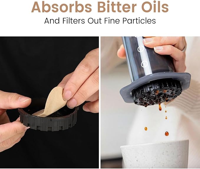 - [Original Coffee Taste]: Disposable coffee filters facilitate the removal of bitterness and large coffee deposits, evenly filter coffee, maintain the original taste of coffee and the balance of acidity, bitterness and sweetness, not affect its original characteristics