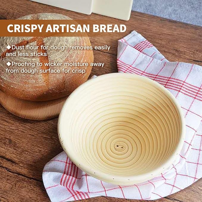 Banneton Bread Proofing Basket,Sourdough Bread Baking Supplies,Sourdough Starter Kit with 9" Round Banneton Basket,Perfect Banneton Basket Gift Set for Making Beautiful Bread