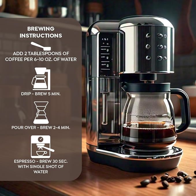 - [Effortless Convenience]: Maud’s ground coffee is designed to be brewed with any coffee maker, ensuring convenient coffee brewing. Brew this savory dark roast, using a drip brewer, French press, pour over, or moka pot.