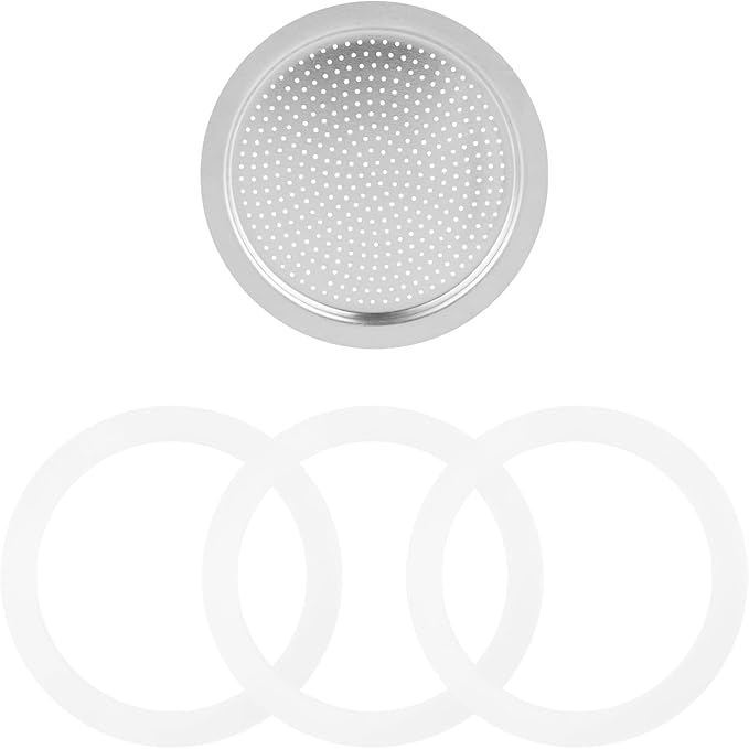 Sivaphe 6 Cups Moka Pot Replacement Infuser Parts Only for Aluminum Italian Stovetop Espresso Coffee Maker, 1 Filter and 3 Silicone Gasket Seals