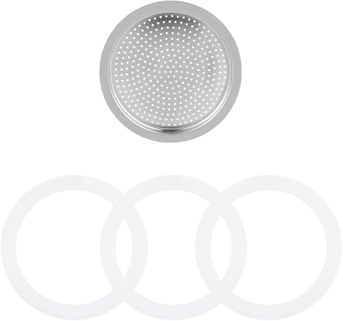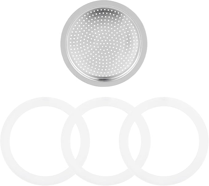 Sivaphe 3 Cup Moka Pot Replacement Infuser Parts for Aluminum Italian Stovetop Espresso Coffee Maker, 1 Filter and 3 Silicone Gasket Seals
