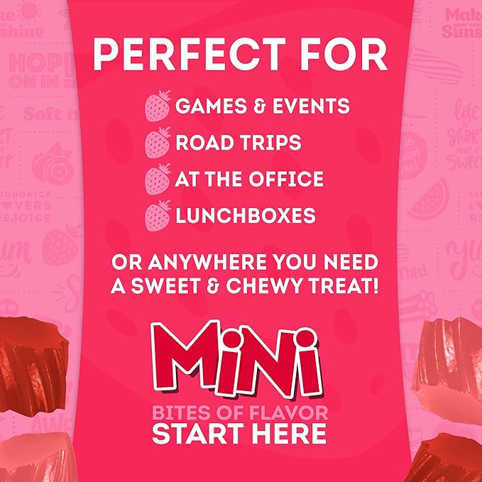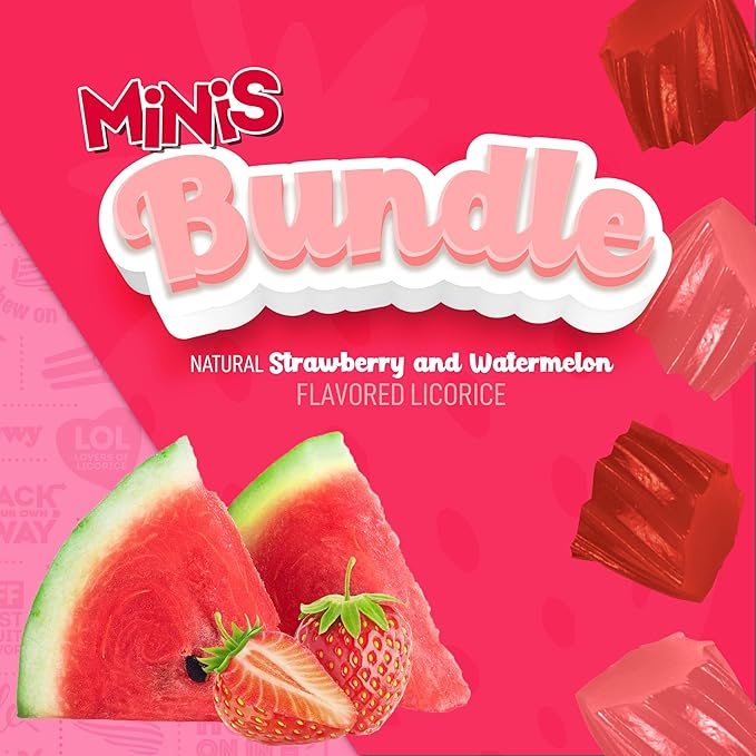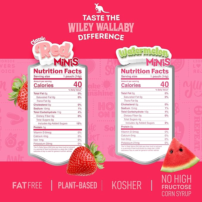 - Mini Watermelon & Red Licorice: All the soft, chewy, flavor-packed goodness of Wiley Wallaby licorice, now in a bite-sized version. Same great taste, just mini, because sometimes, bite-sized is the right size!