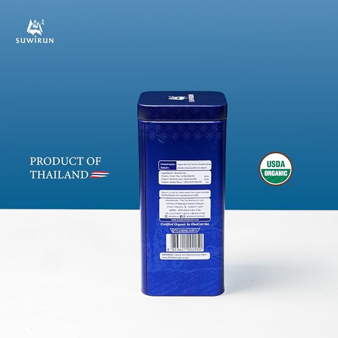 - 🌱NO ARTIFICIAL COLORS OR ADDITIVES – Unlike artificially colored teas, Suwirun Organic Blue Thai Tea gets its vibrant blue color naturally from butterfly pea flowers. Free from synthetic dyes and chemicals, it’s a 100% pure, organic tea experience.