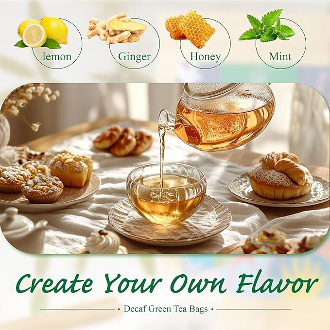 - 【No Caffeine Jitters】Decaf green tea bags allow people to enjoy the benefits of green tea without the stimulating effects of caffeine. This is especially suitable for those who are sensitive to caffeine or prefer to avoid it!
