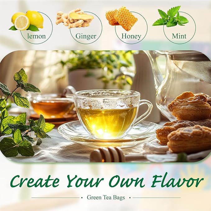 - 【Variety of Flavors】While the classic green tea flavor is popular, green tea bags are also available in a variety of flavored options, such as jasmine, lemon, mint, or even fruity blends