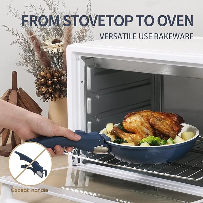 - 2. Unique Detachable Handle: Our Detachable handle is professionally tested, no need to worry about wobbly handles. The strong locking procedure to prevent accidental touch-More Safer. Remove the handle during cooking-to prevent it from averheating and discolarationand ensure its durability.
