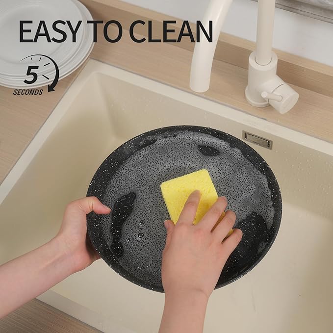 - 3. Easy Cleaning & Wide Compatibility: Just a cloth and rinse it with water, less water wasted.recommend hand wash,it is really easy to clean. with extended bottom design. Our nonstick cookware can work on all cooktops, including induction.