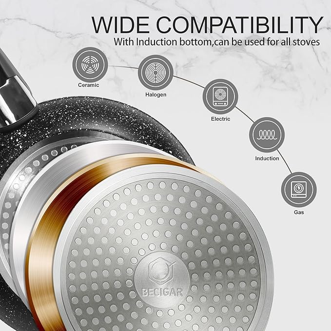 - 1. High-Performance Nonstick Ceramic Coating: Our pots and pans set ceramic with high Non-stick performance, the ceramic nonstick pan is PFOS/PFOA free, pots and pans set ceramic nonstick cookware ensures your daily cooking is always safer and healthier.