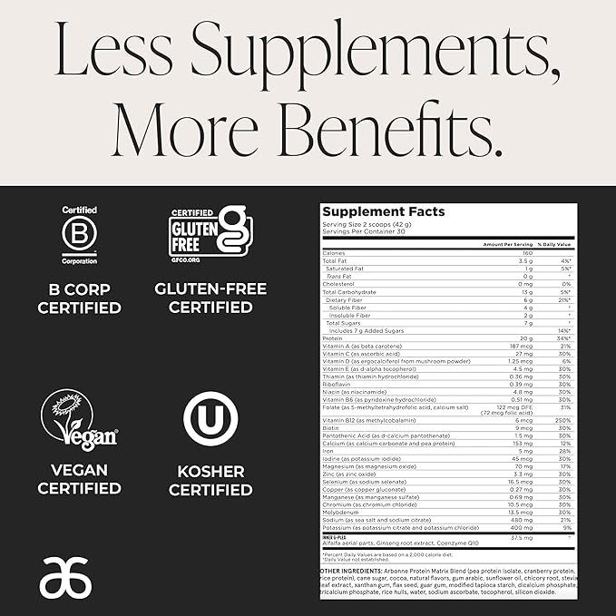 - Plant-Based Protein Blend - Each serving delivers 20g of easy-to-digest protein sourced from Peas, Cranberries, and Rice, supporting muscle health and overall well-being.