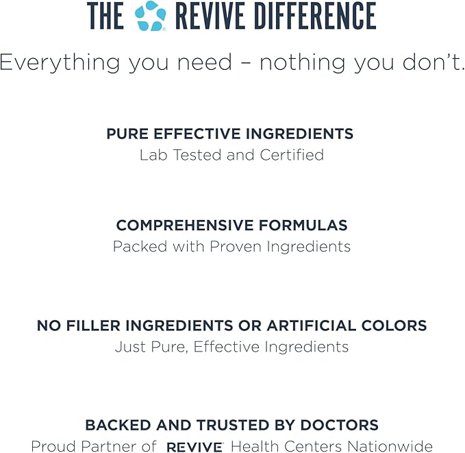 - Experience the Difference: The mission here at Revive MD begins with you. Our vision is to encourage, educate, and empower you to harness the powers of nature to better your health. Through the art of supplementation, we strive to help you experience the highest quality of life.