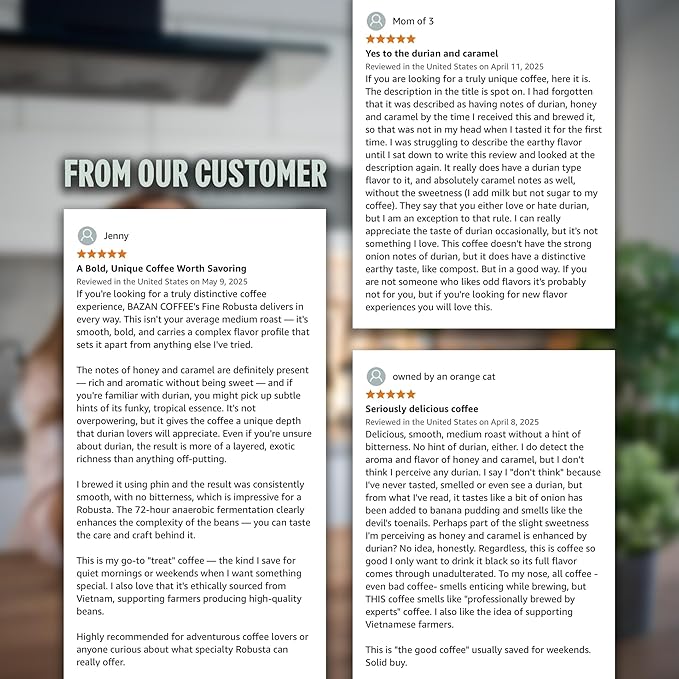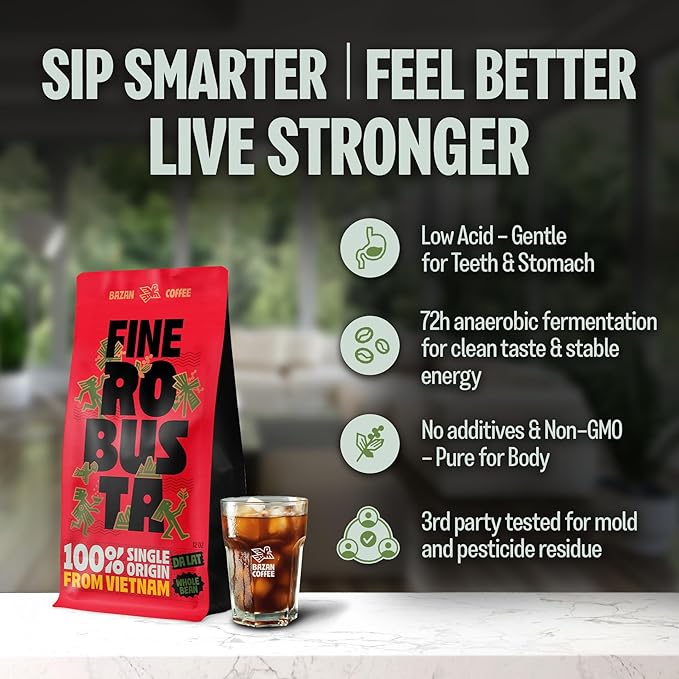 - Bold, smooth Fine Robusta with unique flavor depth: Our Dak Lak Robusta delivers a rich, full-bodied cup with a naturally smooth finish and complex notes of durian, honey, and caramel in every sip.