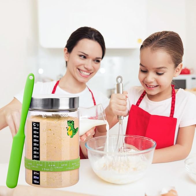 - 2. (Dual-Lid Fermentation System) Switch between breathable cloth covers (active rising) and airtight aluminum lids (fridge storage). Includes 2 temperature stickers to monitor both jars simultaneously.