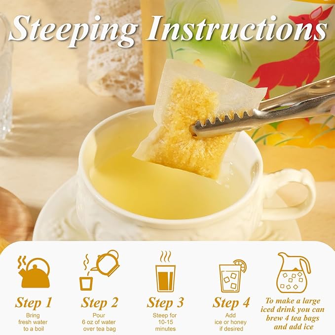 - 【Brewing Suggestions】Place the organic ginger tea bag into a preheated teacup and steep for 10-15 minutes. Squeezing the tea bag when removing ensures that all the essence is incorporated to ensure flavor. For a stronger tea, use 2 tea bags