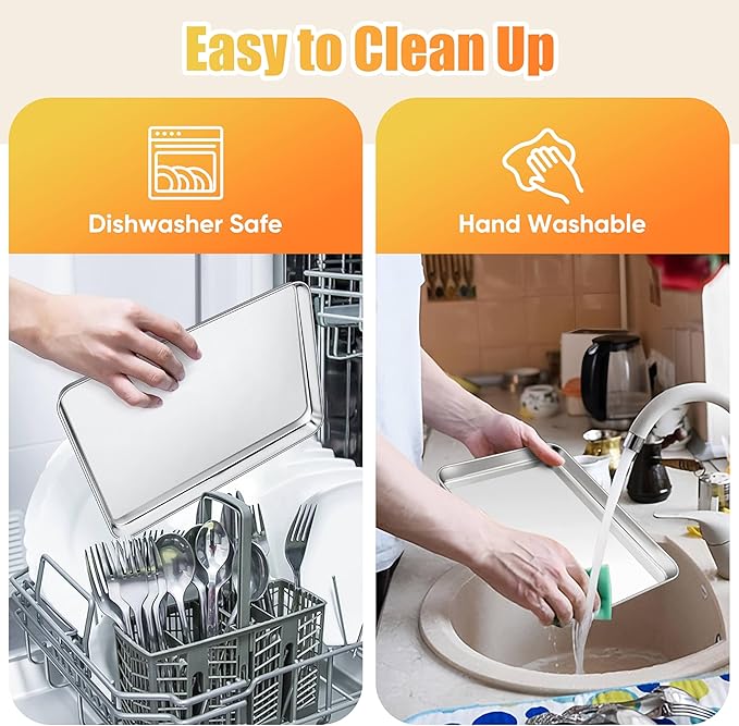 - Premium materials, small baking sheet is well made by pure stainless steel without any chemical coating, healthy and safe for daily baking, the great replacement of aluminum pan or nonstick coated pan, rust free for long lasting use, ideal for home kitchen restaurant