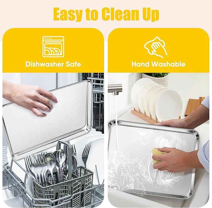 - Premium materials, heavy duty baking sheet is well made by pure stainless steel without any chemical coating, healthy and safe for daily baking, the great replacement of aluminum pan or nonstick coated pan, rust free for long lasting use, ideal for home kitchen restaurant