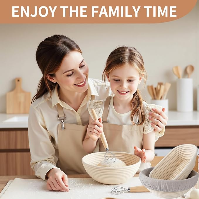 - From Dough to Glory in 1 Box: Everything you need to conquer sourdough: 2 handmade rattan baskets, 5-blade scoring tool, silicone sling, and 11 essential tools. Includes foolproof recipe guide – even first-timers can bake Instagram-worthy loaves!