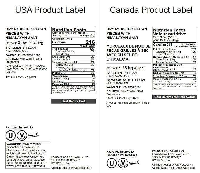 Food to Live Dry Roasted Pecan Pieces with Himalayan Salt, 3 Pounds ??Oven Roasted, Lightly Salted, No Oil Added, Perfect for Cooking, Baking and Snacking, Vegan, Kosher, Bulk