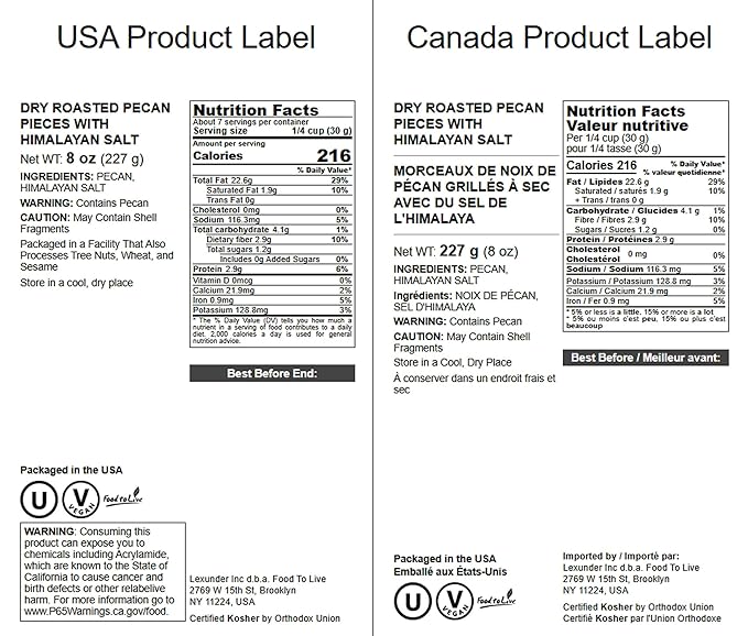 Food to Live Dry Roasted Pecan Pieces with Himalayan Salt, 8 Ounces ??Oven Roasted, Lightly Salted, No Oil Added, Perfect for Cooking, Baking and Snacking, Vegan, Kosher, Bulk