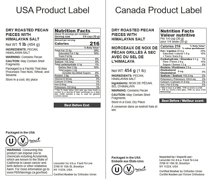 Food to Live Dry Roasted Pecan Pieces with Himalayan Salt, 1 Pound ??Oven Roasted, Lightly Salted, No Oil Added, Perfect for Cooking, Baking and Snacking, Vegan, Kosher, Bulk