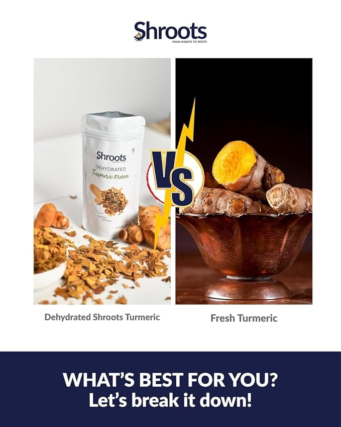 - How Many Serving?: Each 45g (1.59 oz) pack of SHROOTS Dehydrated Turmeric Flakes contains approximately 15 servings, with a standard 3g serving size, making it easy to add the right amount to your meals.