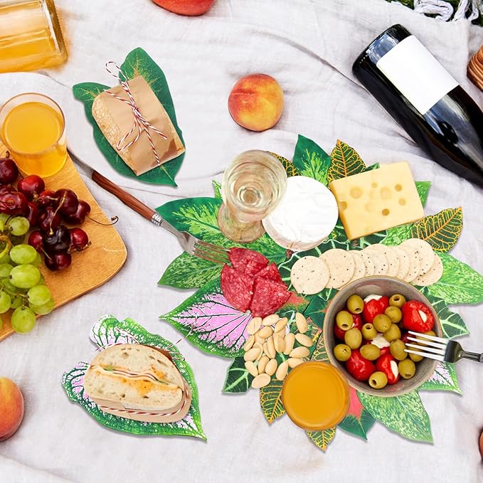 - Tropical Leaves Designs: these charcuteries boards have 6 realistic tropical leaves patterns; The paper cheese leaves are designed in the shape of tropical leaves, which are fashionable and vivid, retro and rustic, creating a strong tropical hues, suitable for decorating your dining table and making your party more lively