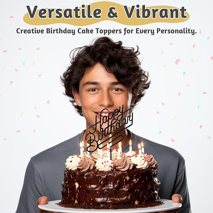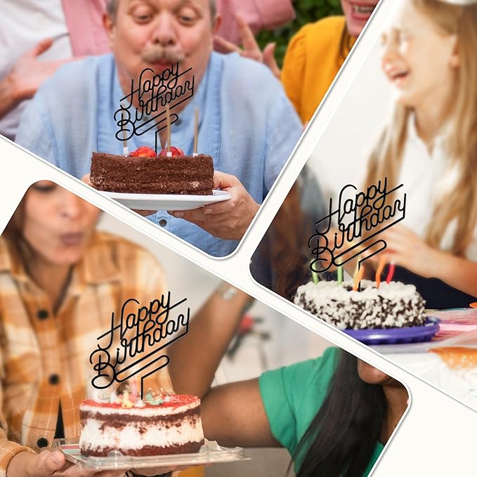- Package Includes: Each set includes 1 PCS black happy birthday cake topper measuring 4.9 IN x 6.7 IN, our birthday cake topper is designed to fit any cake.