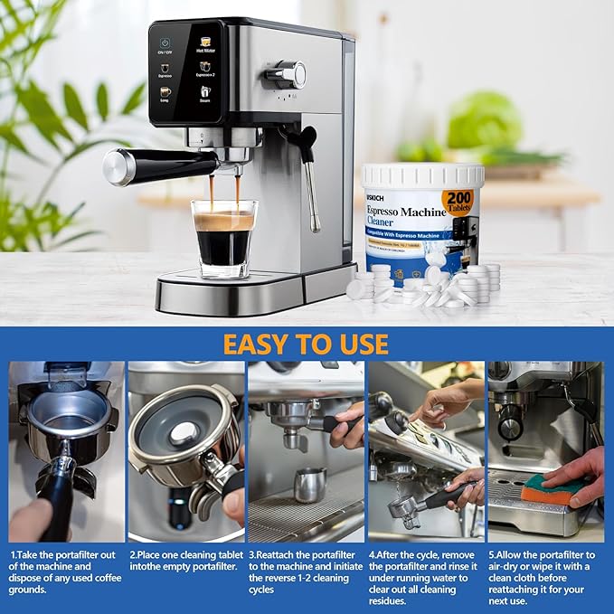 - Enjoy Better Tasting Coffee: The espresso machine cleaning tablet maximum efficiency dissolves coffee particles and fats,keeps internal parts clean for fresher espresso taste.Taste your coffee, not the nasty buildups in your machine.