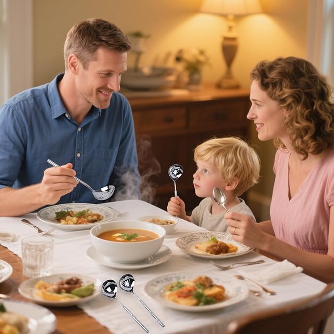 - Premium 304(18/8) Stainless Steel Soup Ladle – Made from heavy-duty, food-grade 18/8 stainless steel for superior rust resistance and durability compared to standard 18/0 steel, ensuring long-lasting performance in home kitchens, restaurants, and commercial use.