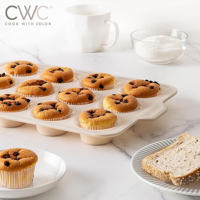 COOK WITH COLOR 17 Pc. Silicone Baking Pan Set - Non-Stick & Easy Clean Silicone Muffin Pans for Baking with Sturdy Metal Frame for Stability, Flexible Cake Molds, Includes Measuring Cups and Spoons