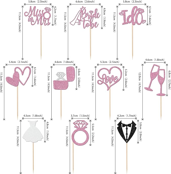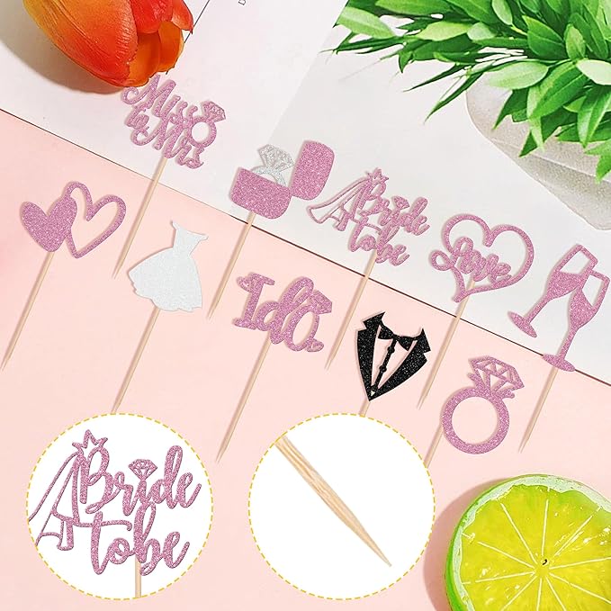 - Wide Usages ! These bride to be cupcake toppers are perfect for wedding engagement theme party, bride to be theme party, bridal shower theme party, miss to mrs love theme party, bachelorette theme party cupcake decorations, they can make your cupcake more attractive and bring the fun to your party.You can also apply them for ice cream, fruits, cookies and other desserts.