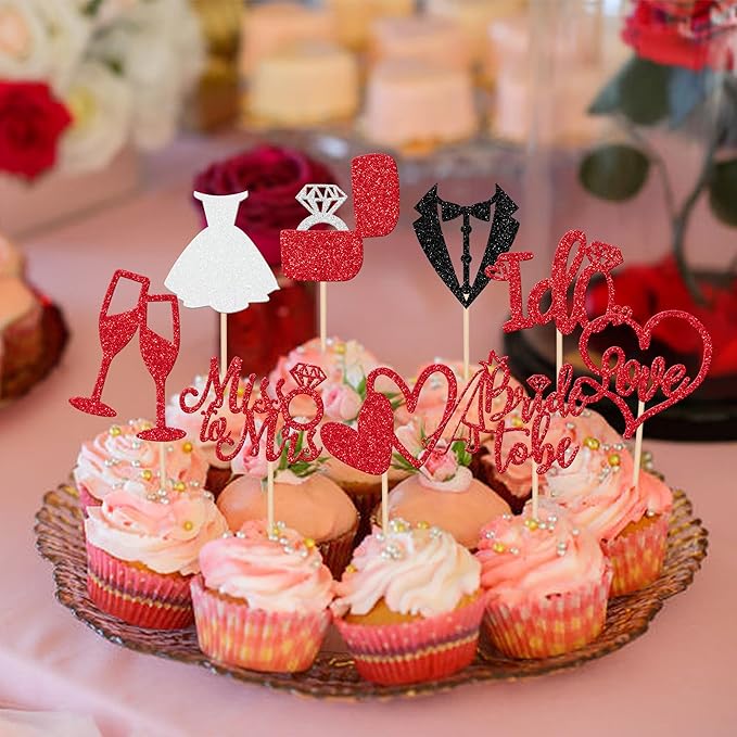 - Wide Usages ! These bride to be cupcake toppers are perfect for wedding engagement theme party, bride to be theme party, bridal shower theme party, miss to mrs love theme party, bachelorette theme party cupcake decorations, they can make your cupcake more attractive and bring the fun to your party.You can also apply them for ice cream, fruits, cookies and other desserts.