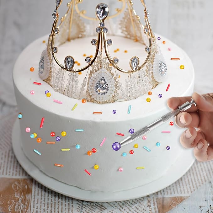 - 【Excellent Material】: Rainbow sprinkles for cake decorating are made of food-grade safe ingredients, you can eat them with confidence. It can be eaten by men, women, old and young. The 4-claw pick up tool is made of stainless steel material, durable and retractable, it allows you to clamp and place pearl sugar smoothly.