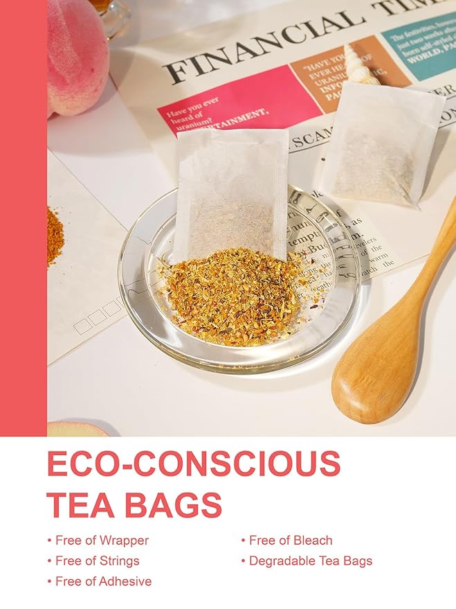 - [100 COUNT ECO-CONSCIOUS TEA BAGS] - Our premium tea bags are made from non-GMO plant fiber, and tea bags are unbleached and compostable. No string and no tag. No extra waste - just healthy & delicious tea!