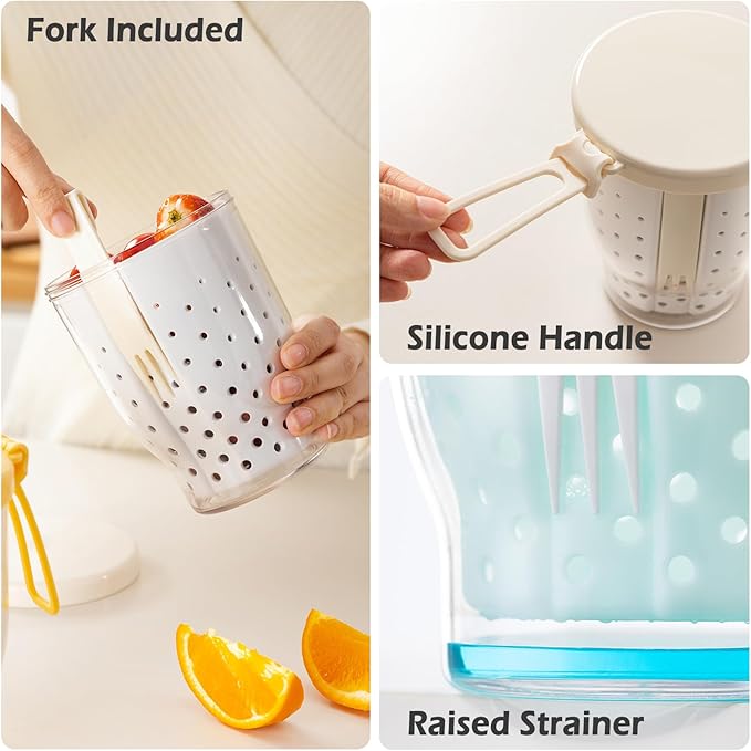 - 【Multi-Functional for Everyday Use】Designed with versatility in mind, these reusable snack containers with lids feature a removable colander and fork, making them ideal for washing, draining, and serving fruits. Whether you're packing berries, grapes, or veggies, these food containers with lids simplify your daily routine with one smart solution.