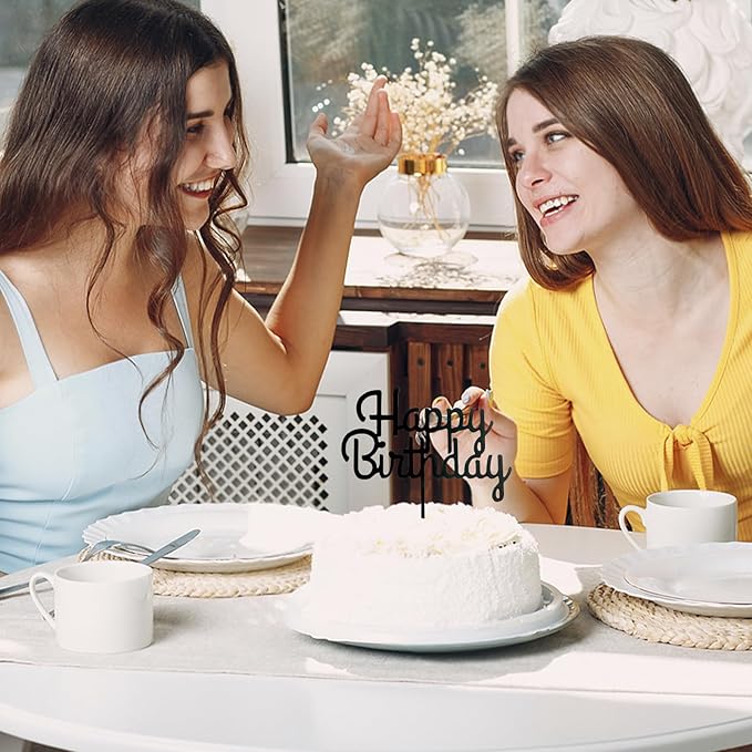 ZHENGYE Black Acrylic Happy Birthday Cake Topper Cupcake Topper Decoration for Baby Shower Birthday Cake Decoration Supplies(Black 16)