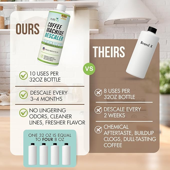 - EXCEPTIONAL VALUE - 10 COMPLETE CLEANING SESSIONS: Each bottle provides 10 full descaling treatments lasting most households 2-3 years. Coffee maker cleaner and descaler designed for regular maintenance every 1-3 months depending on water hardness.