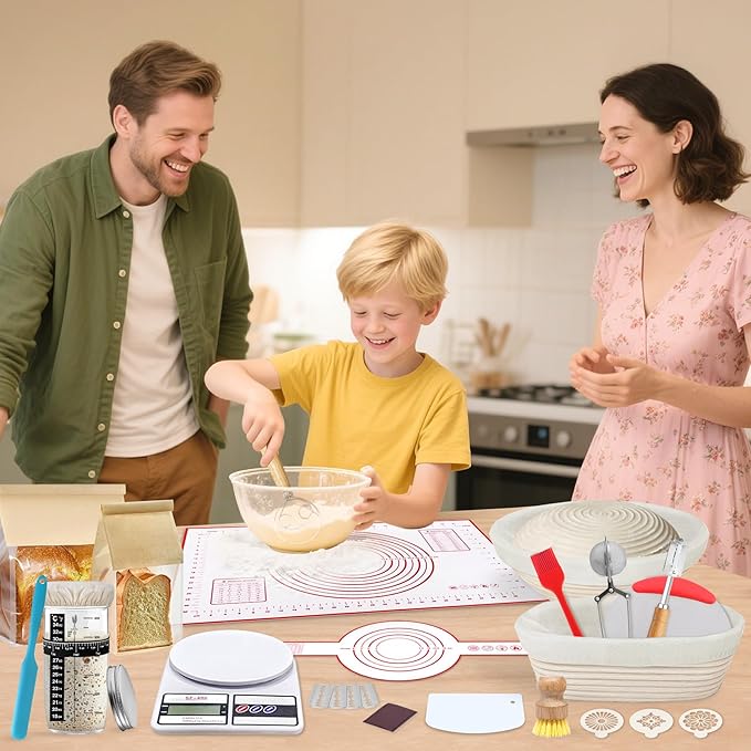 - Perfect for All Skill Levels: Whether you're a sourdough newbie or a seasoned artisan, our sourdough kit makes baking foolproof.Included with linen liners for versatility, the sourdough starter kit helps you achieve bakery-worthy loaves every time